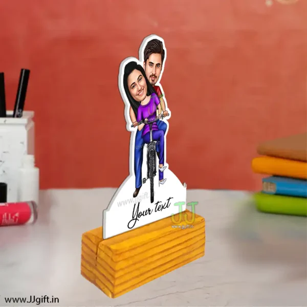 Couple on cycle caricature