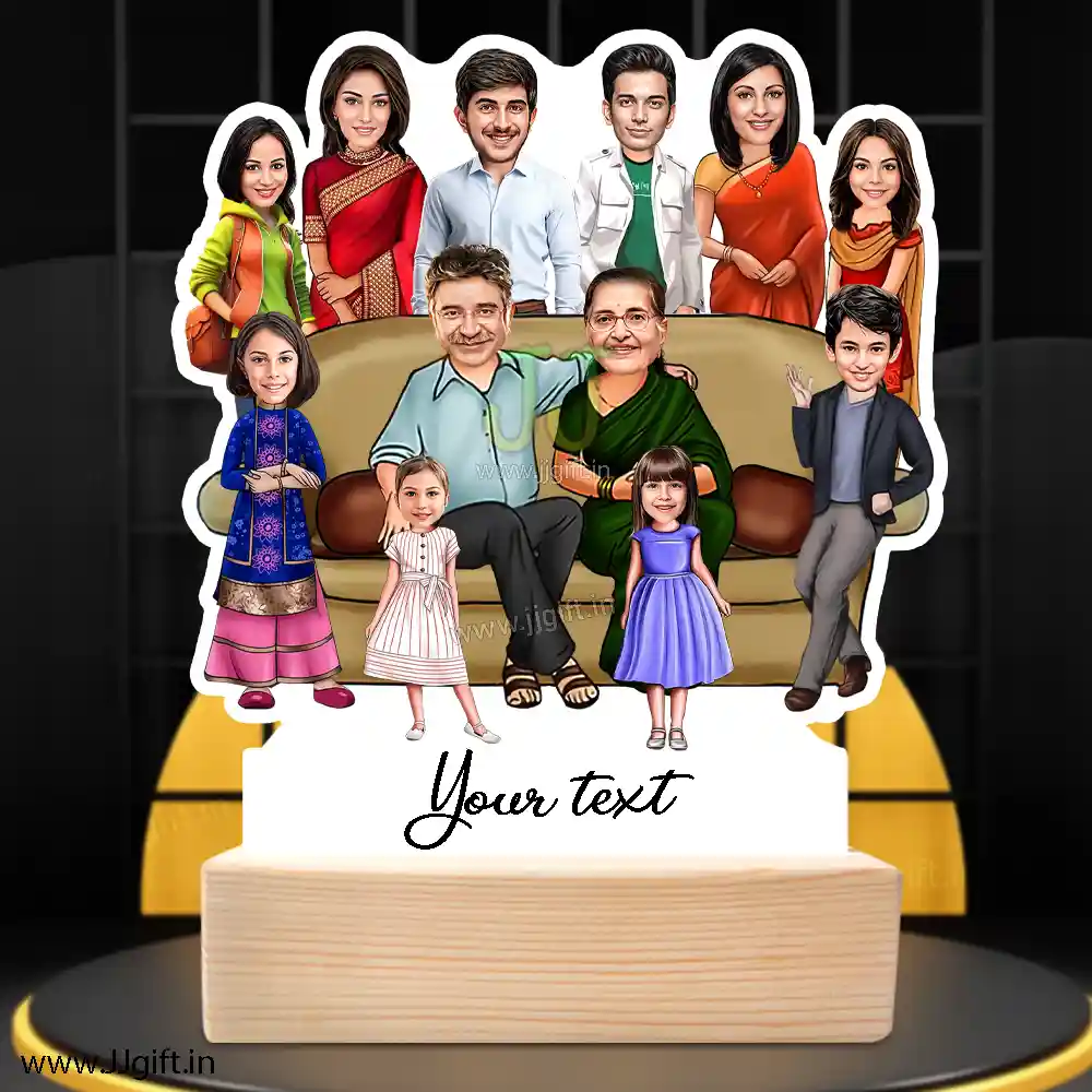 Family photo cartoon gift with 2 couple, 1 boy and 5 girl