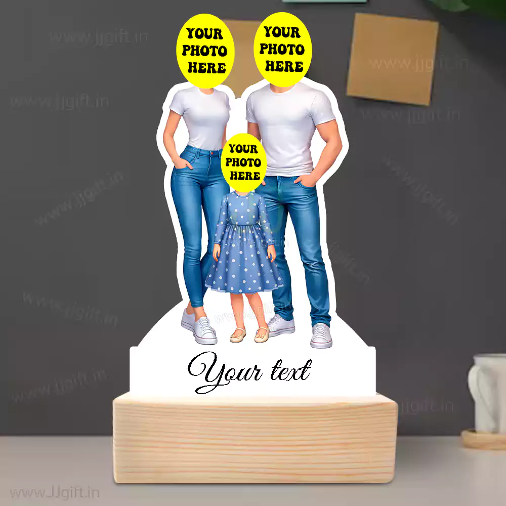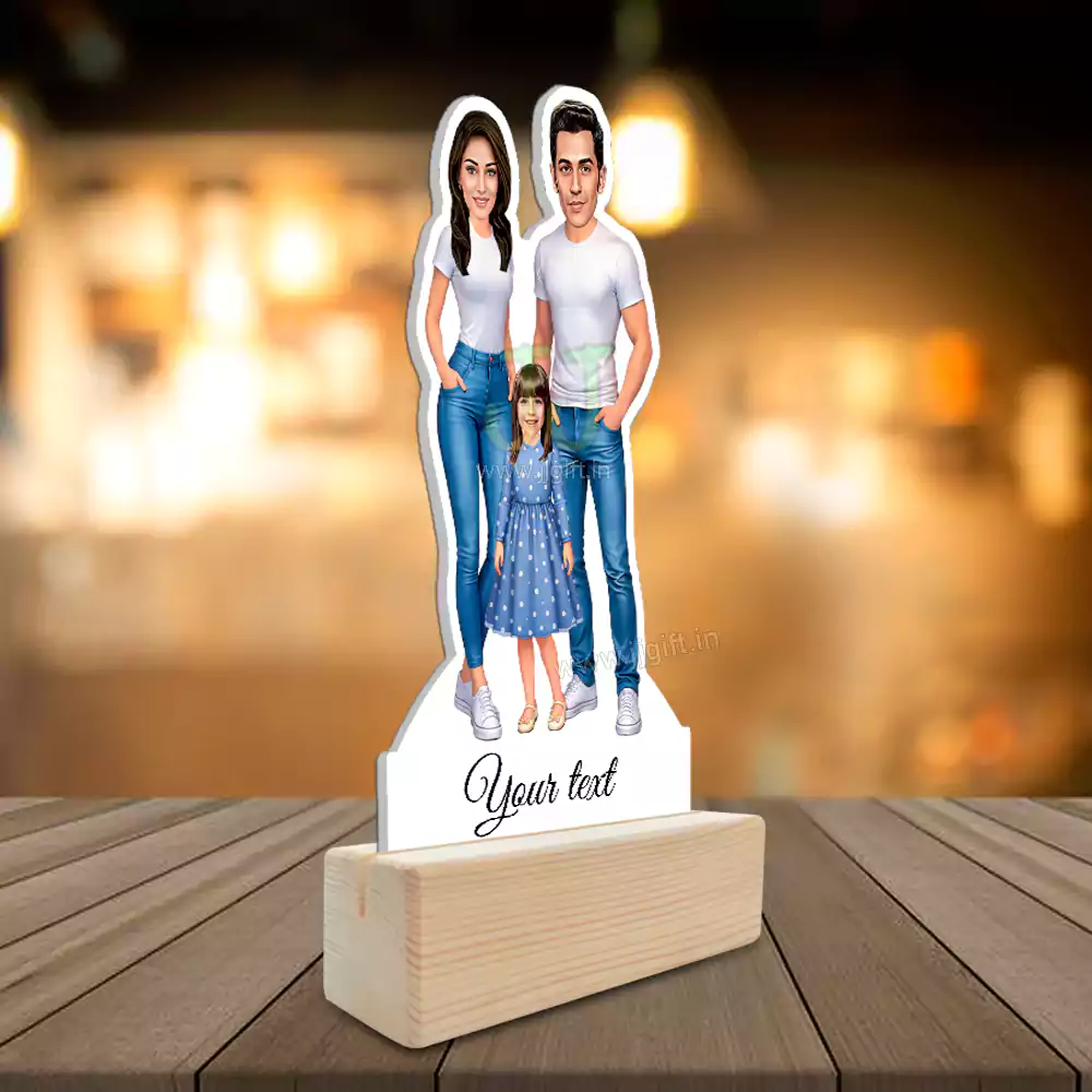 Personalized Happy Family Couple With 1 Girl Caricature Table Top Standee ?? - JJgift .in ??