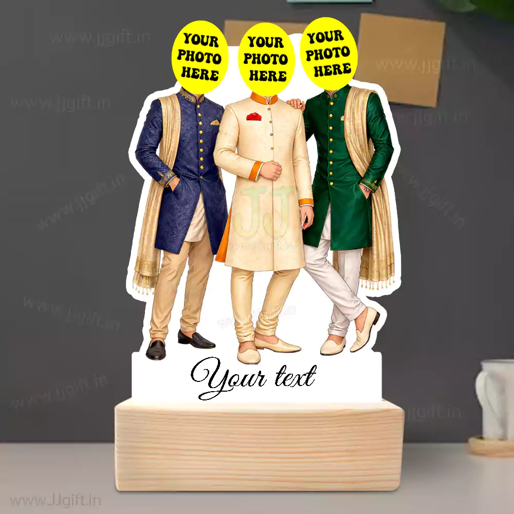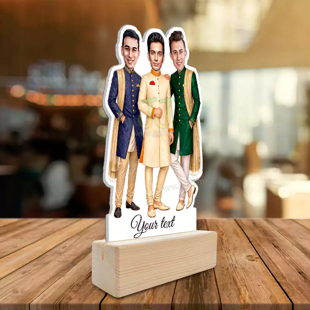 Personalized Luxury Traditional Outfit Caricature Showpiece for 3 Friend ?? - JJgift .in ??