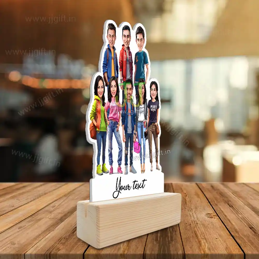 Stylish outfit Male and Female Friend Group caricature For 4 Male & 4 Female