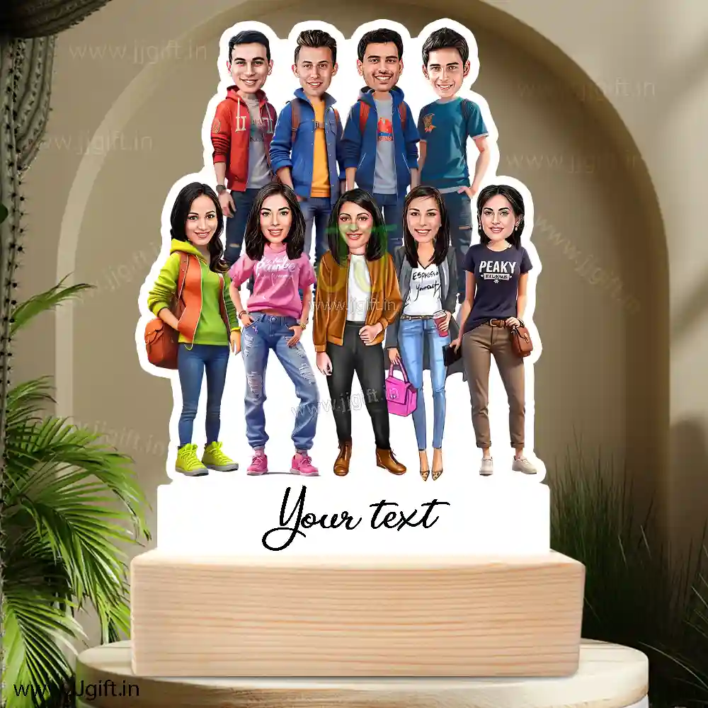 Stylish outfit Male and Female Friend Group caricature For 4 Male & 5 Female